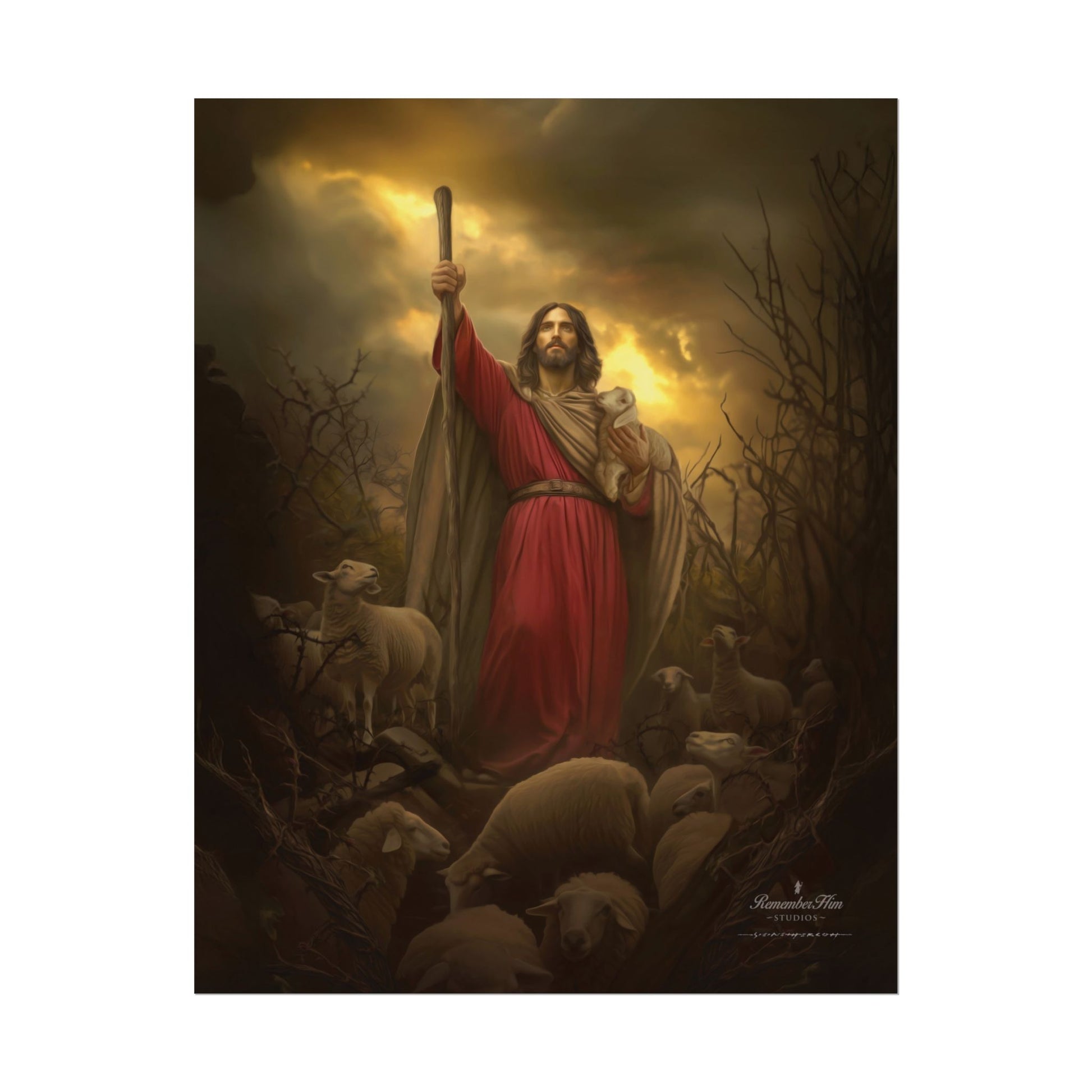 Across the series, you’ll see moments of quiet care and strength: the Shepherd in open fields, in rugged terrain, in stormy places, and in tender moments of rescue. Each image stands alone, yet together they tell one consistent message: you are not forgotten, you are not alone, and you are worth gathering.