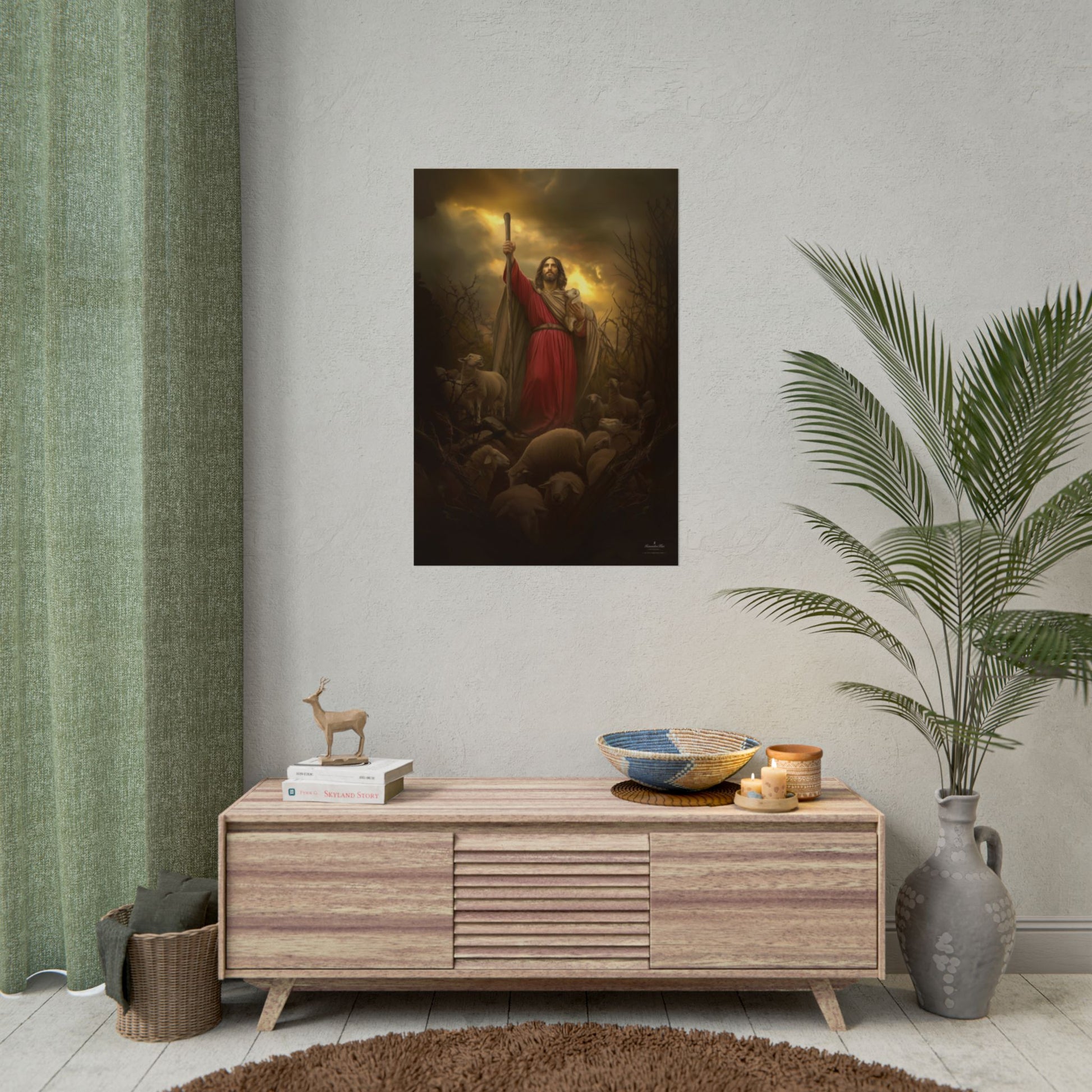Printed on high quality fine art satin finish paper, these posters preserve rich detail and color with a soft, refined sheen. The satin finish helps reduce harsh glare while keeping the artwork crisp and vibrant, making it ideal for framing in youth bedrooms, family spaces, offices, or anywhere you want a daily reminder of Christ’s guiding love.
