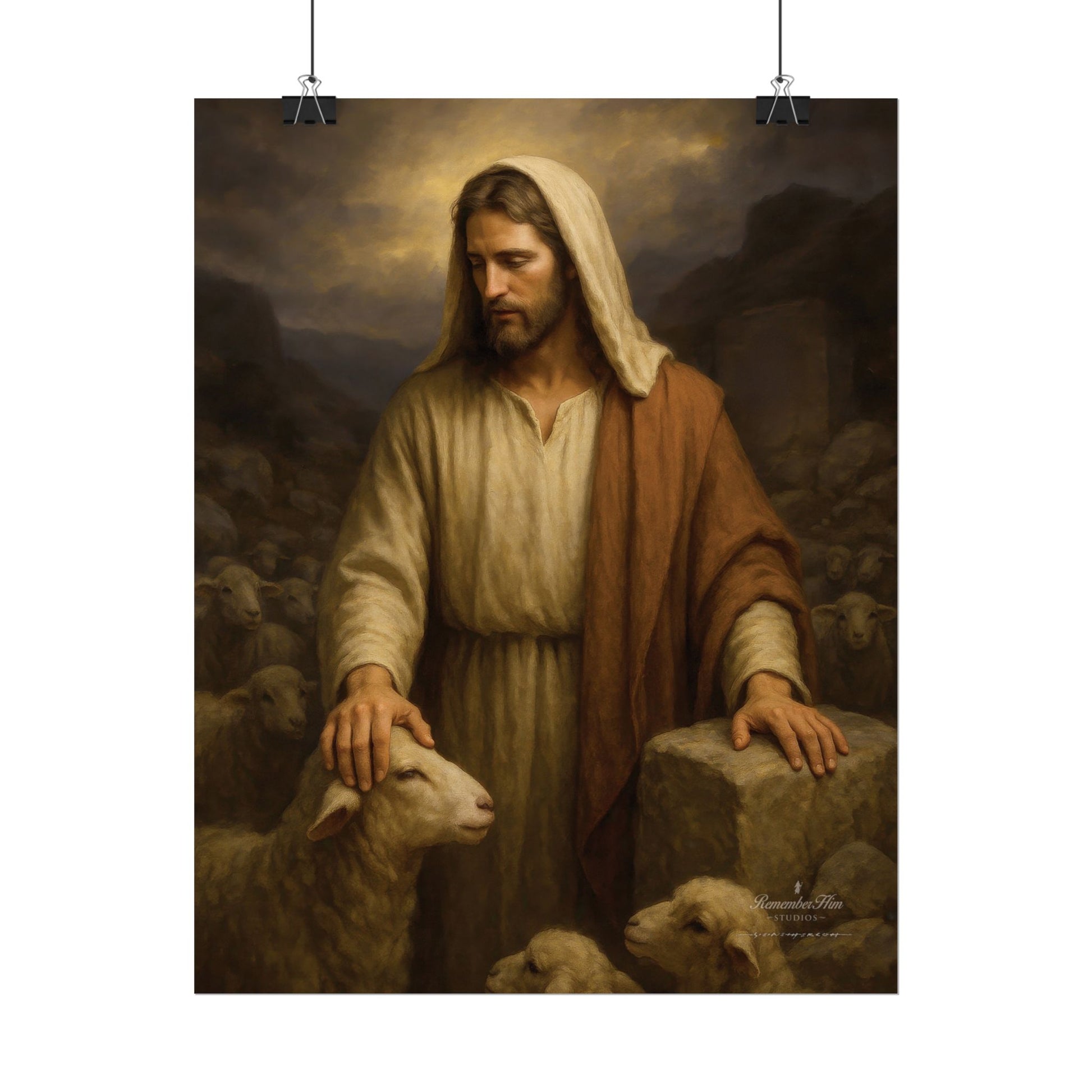 Across the series, you’ll see moments of quiet care and strength: the Shepherd in open fields, in rugged terrain, in stormy places, and in tender moments of rescue. Each image stands alone, yet together they tell one consistent message: you are not forgotten, you are not alone, and you are worth gathering.