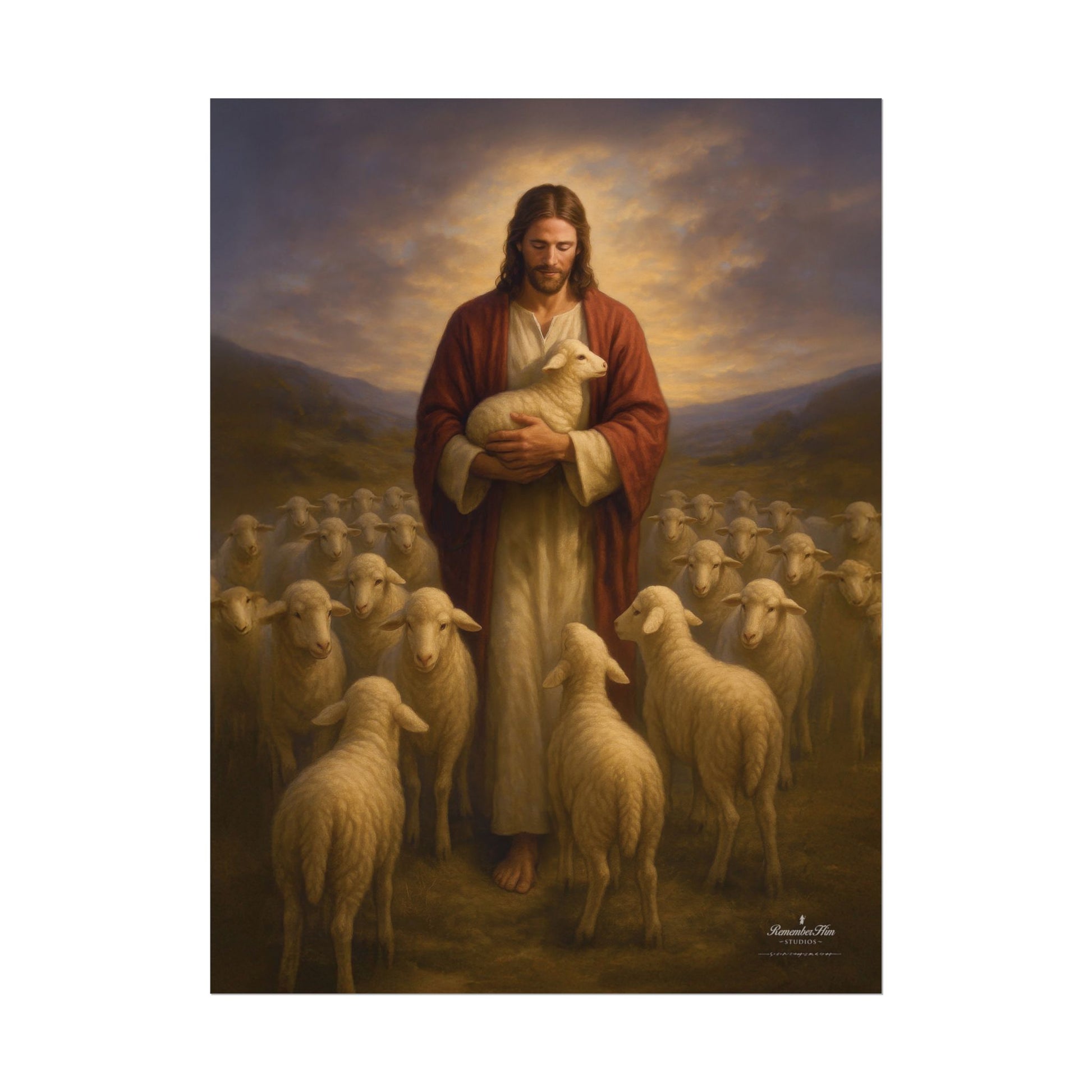 Across the series, you’ll see moments of quiet care and strength: the Shepherd in open fields, in rugged terrain, in stormy places, and in tender moments of rescue. Each image stands alone, yet together they tell one consistent message: you are not forgotten, you are not alone, and you are worth gathering.