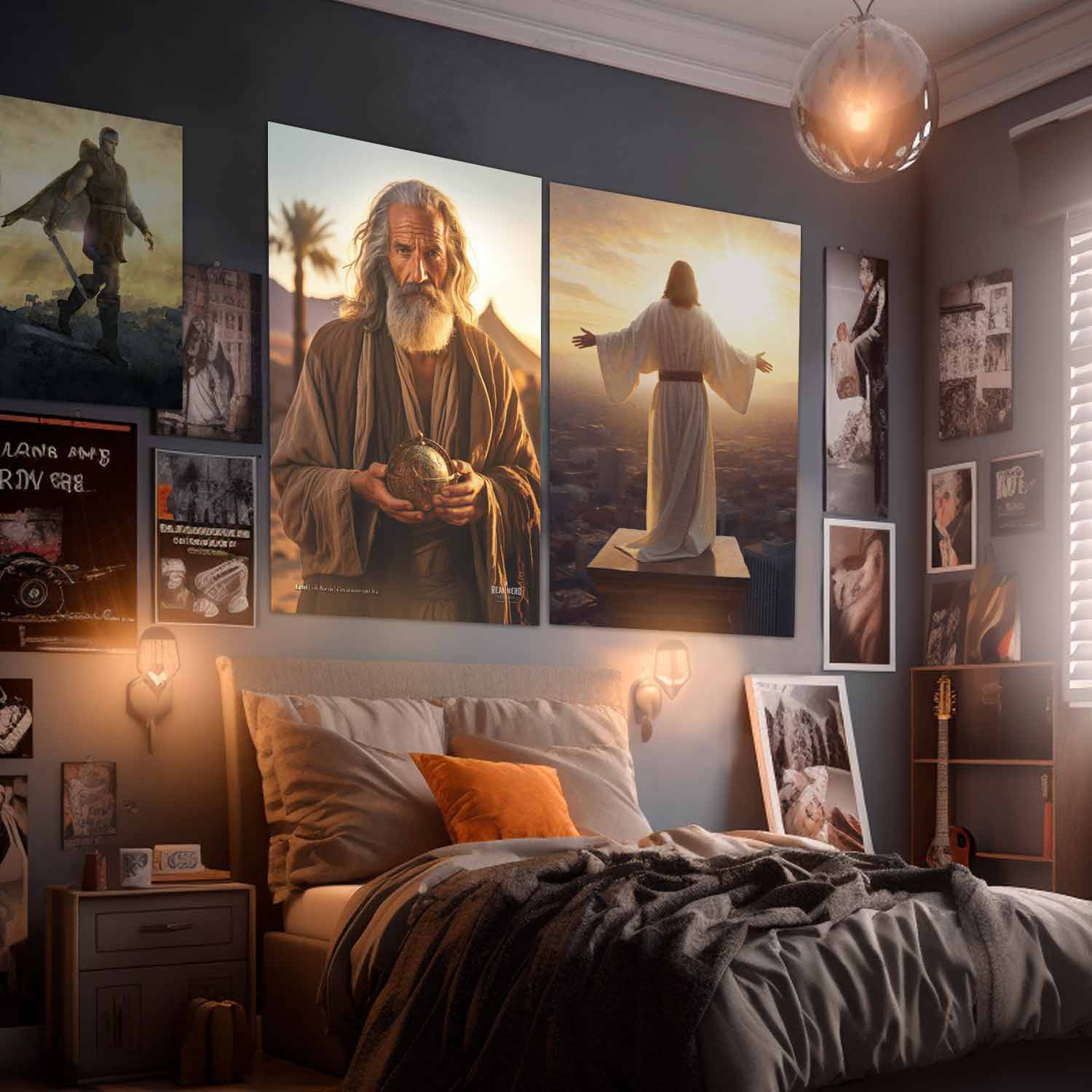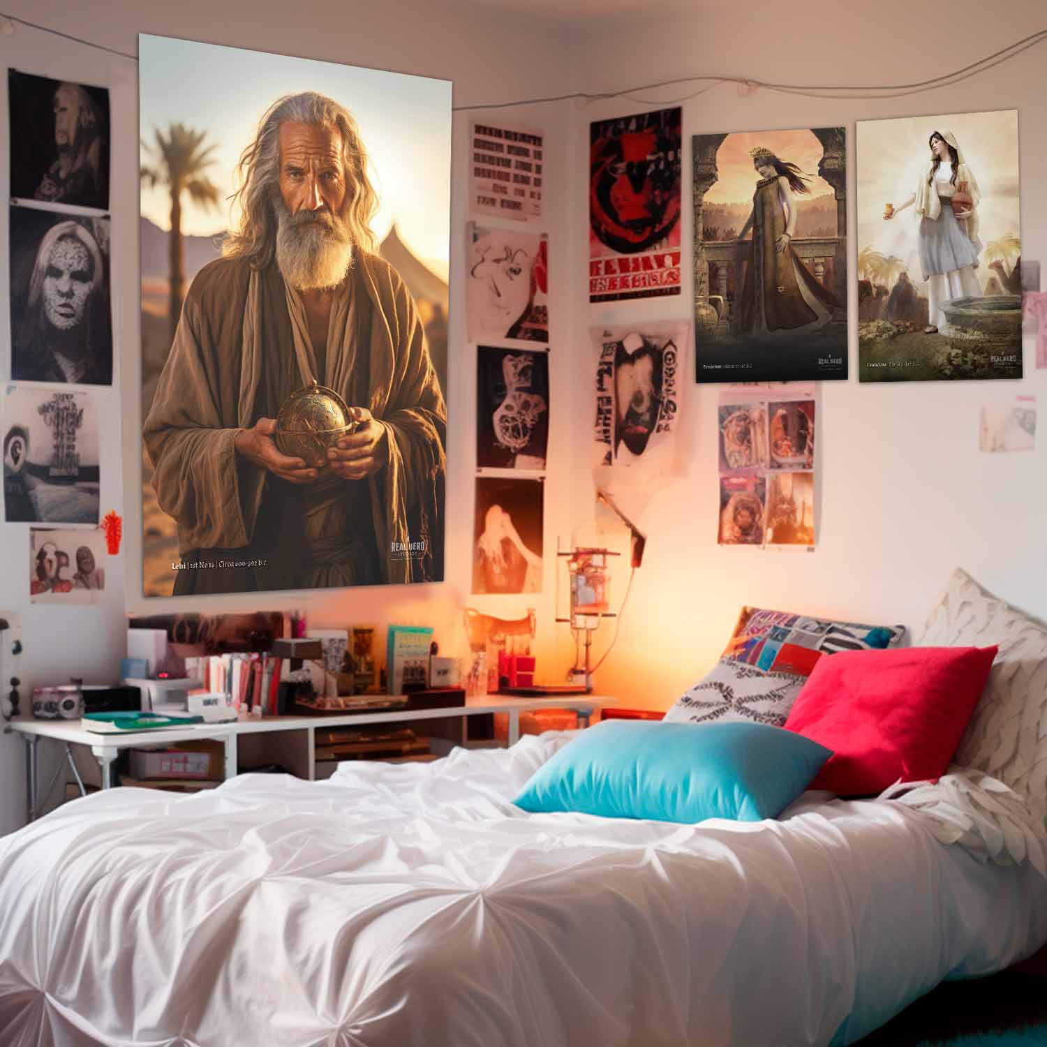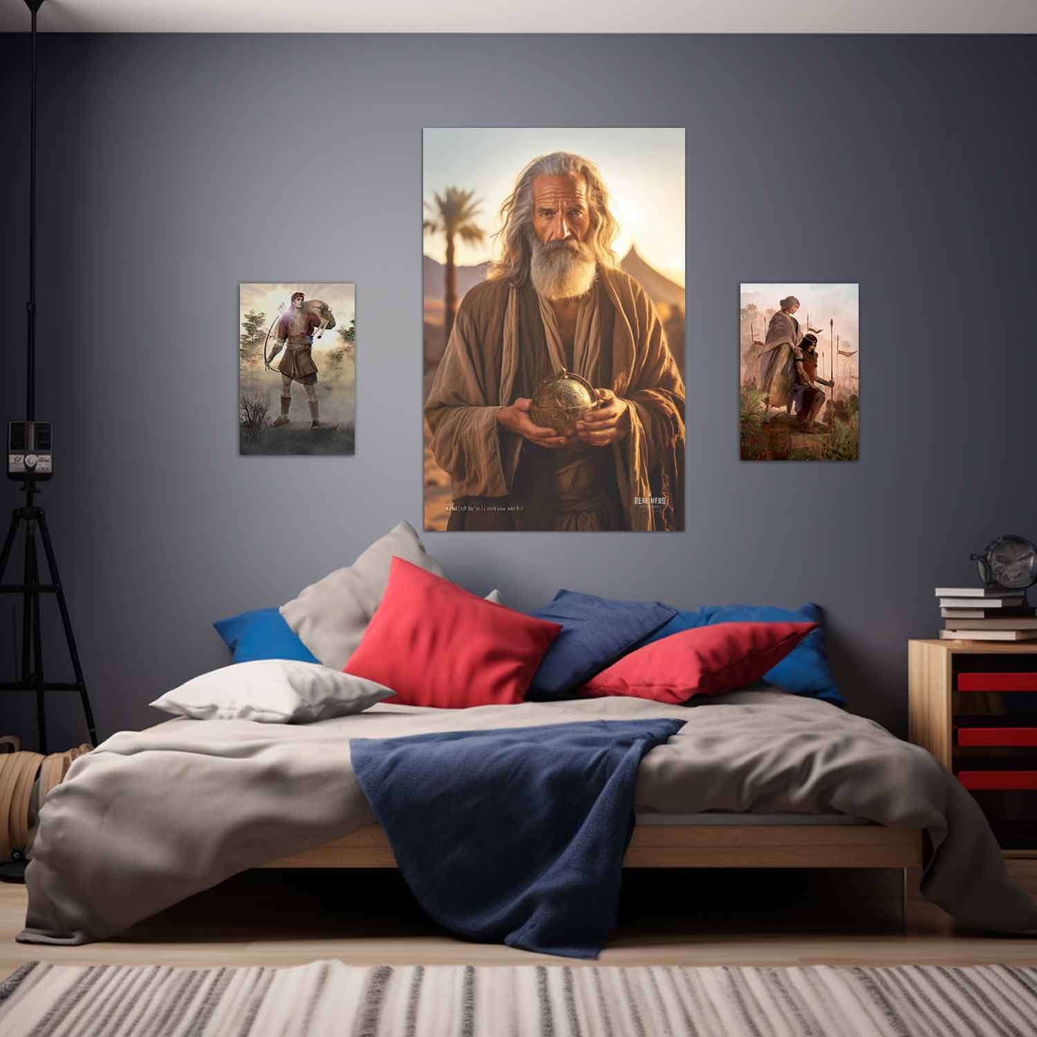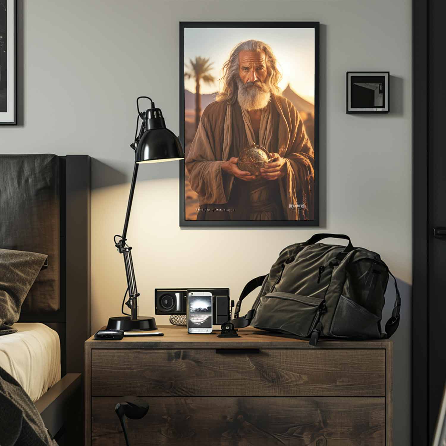The poster portrays Lehi, a revered prophet from the Book of Mormon, holding the sacred Liahona. As a symbol of divine guidance, the Liahona played a crucial role in Lehi's journey through the wilderness. This instrument, provided by God, directed Lehi's path and served as a tangible manifestation of the Lord's blessings and guidance. Lehi's faithful stewardship of the Liahona exemplifies his unwavering trust in God and his willingness to follow divine direction. Display this captivating image of Lehi with the Liahona in your home, available in three sizes: 11x17, 16x24, and 24x36. Let it serve as a visual reminder of the importance of relying on God's guidance in our own life's journey, inspiring faith and determination in all who behold it.