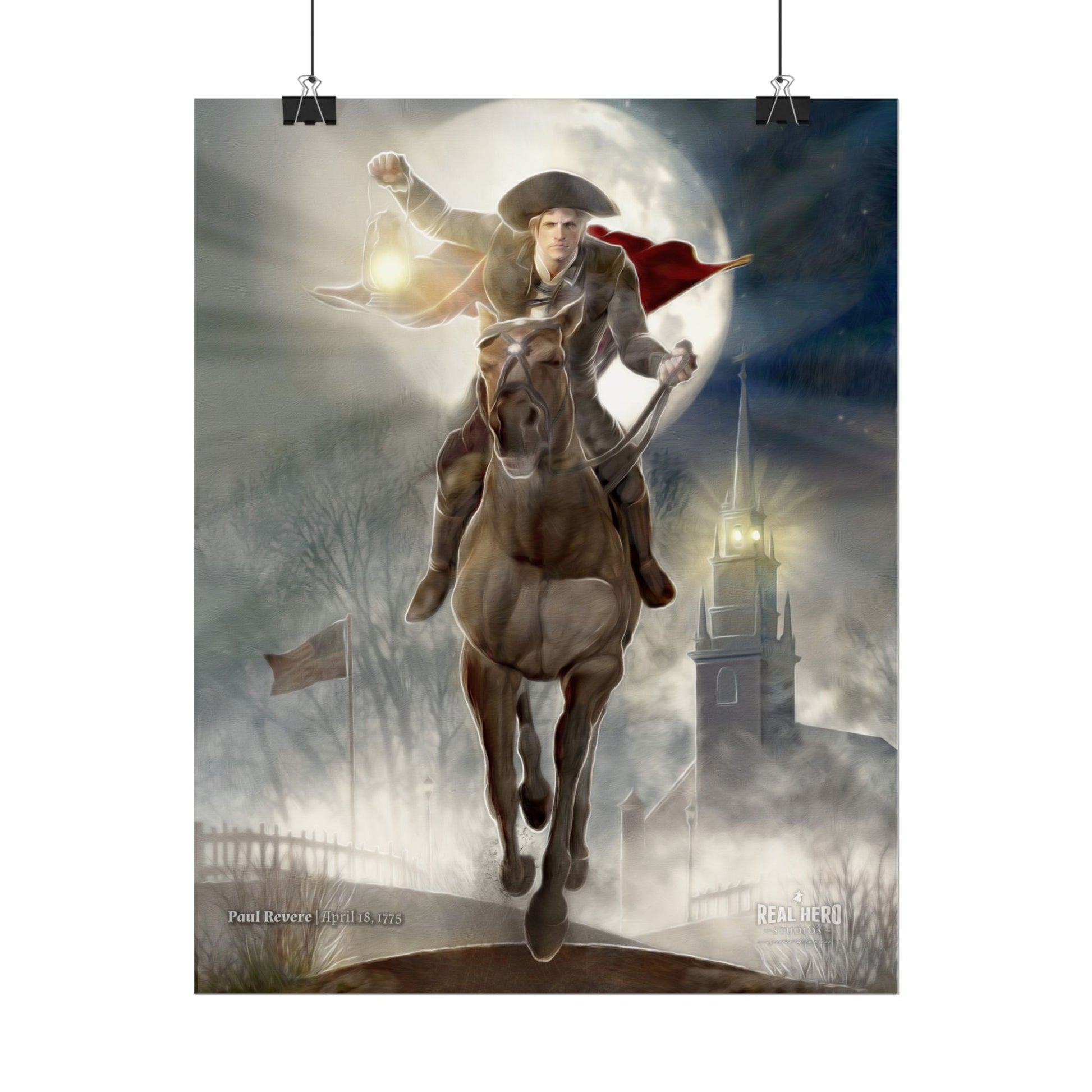 This cinematic artwork captures Paul Revere on April 18, 1775, racing through darkness and storm with urgency written into every detail. The moon burns bright behind him, the road disappears into fog, and the chapel stands watch in the distance as Revere presses on with one mission: to warn, to rally, and to protect. It’s a tribute to the kind of courage that acts quickly, speaks clearly, and refuses to hesitate when others are counting on you.