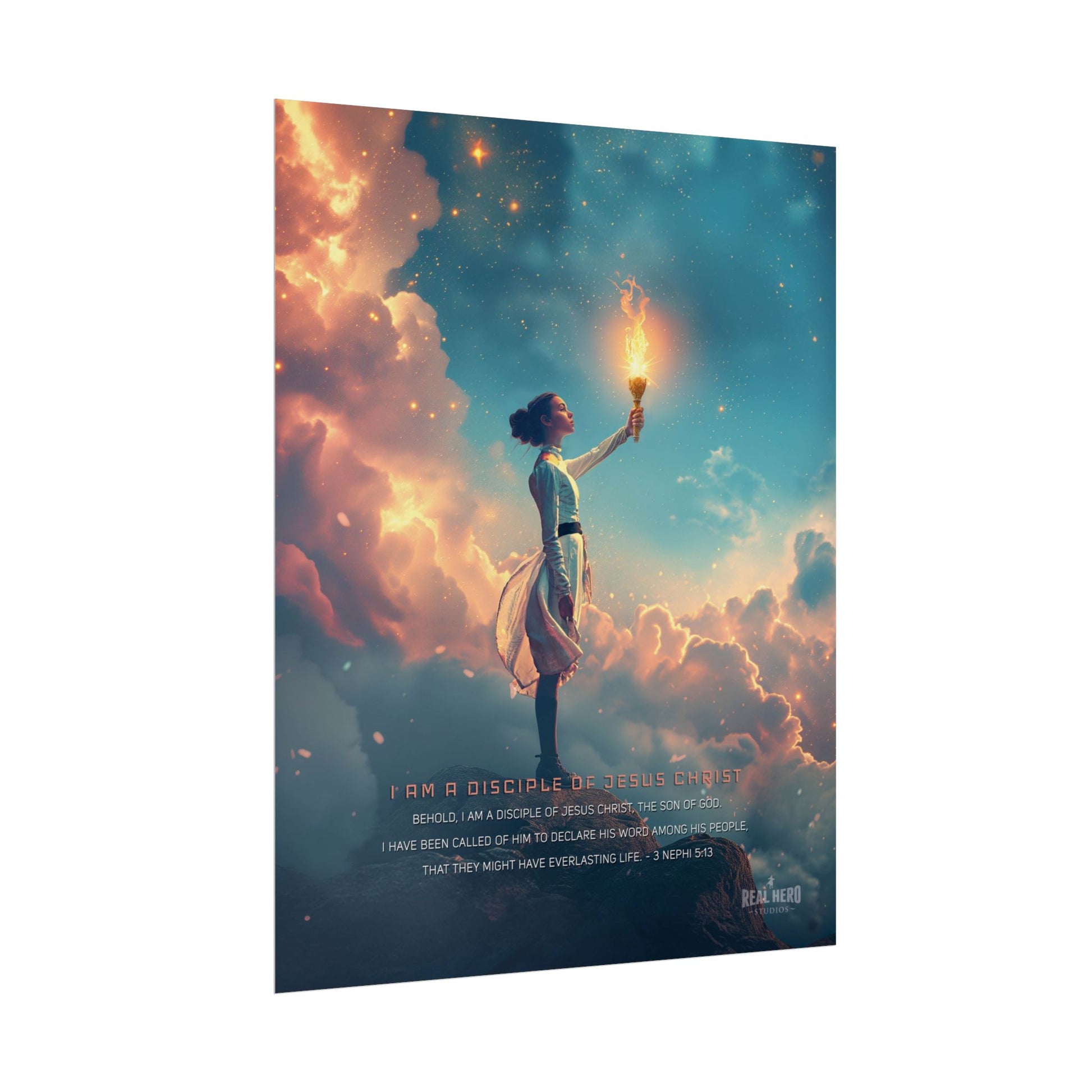 Introducing our "I am a Disciple of Jesus Christ" 2024 youth theme collection, where each artwork vividly portrays a youth holding a torch, symbolizing not only the radiant light of Jesus Christ within but also the youth being the light of Christ to others in a darkening world. Inspired by 3 Nephi 5:13 in the Book of Mormon, these posters, available in three sizes (11x17, 16x24, 24x36), go beyond mere decoration—they inspire discipleship and illuminate the path for others